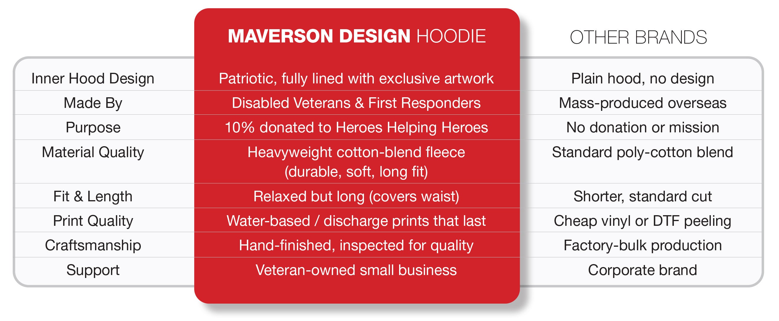 "The flag lining is a powerful touch—subtle, meaningful, and bold. Great fit, super comfortable, and made with purpose. Not just a hoodie… it stands for something."