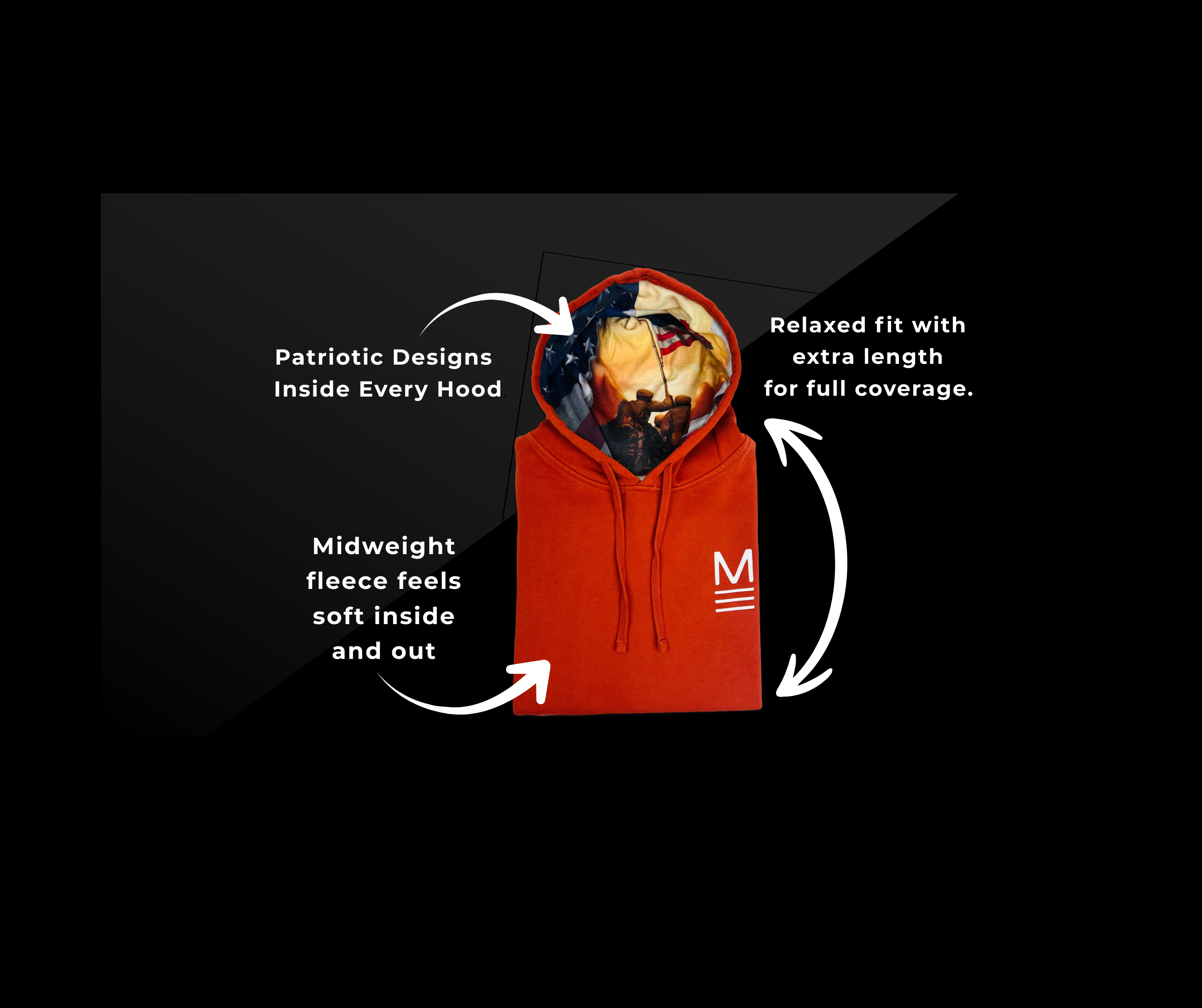 "Clean look on the outside, bold meaning on the inside. The flag lining says it all—this hoodie hits different."